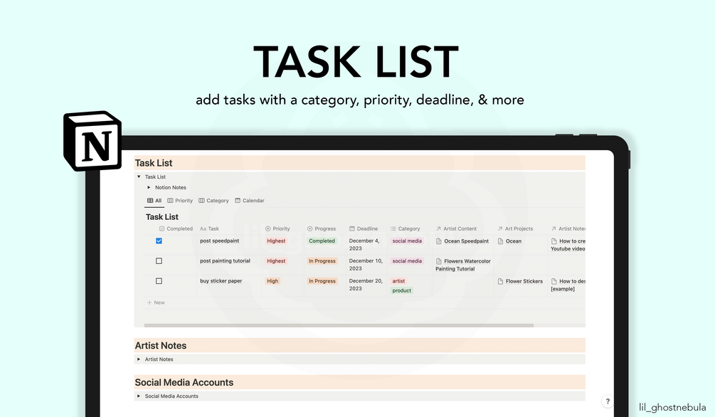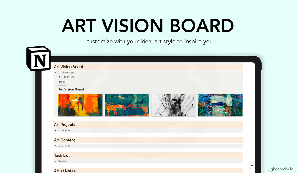 Start your content creation journey, your art business, or just organize your art projects with this workspace!