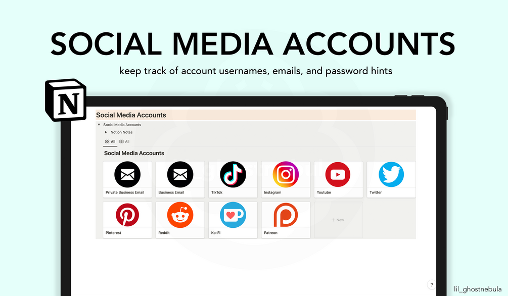 ✨ Social Media - keep track of your accounts, usernames, and link sharing