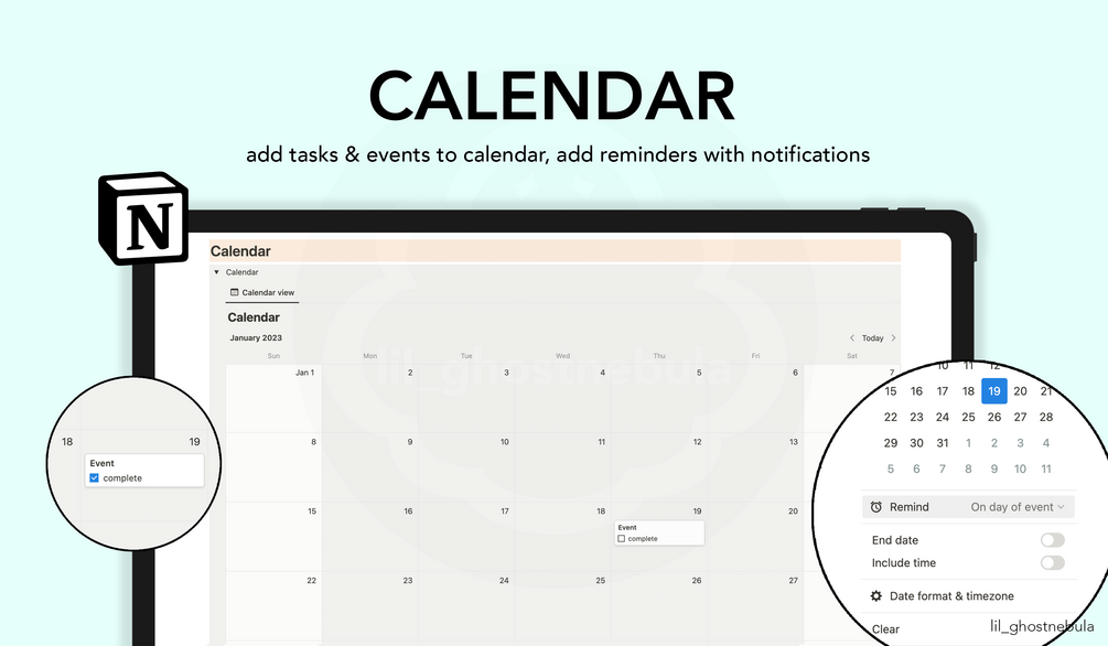 ✨Calendar - add tasks & events to calendar, add reminders with notifications