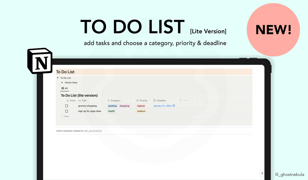 ✨To Do List (Lite) - add tasks and choose a category, priority, and deadline