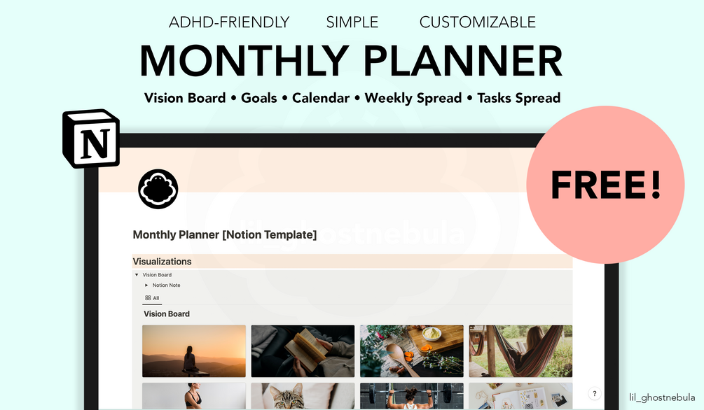 FREE Monthly Planner | Notion Template | Simple · Customizable · Aesthetic · ADHD-Friendly